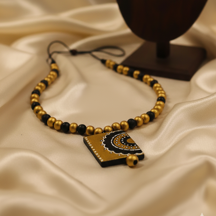 Terracotta Jewelry Necklace Set for Women β Handcrafted Clay Necklace with Earrings